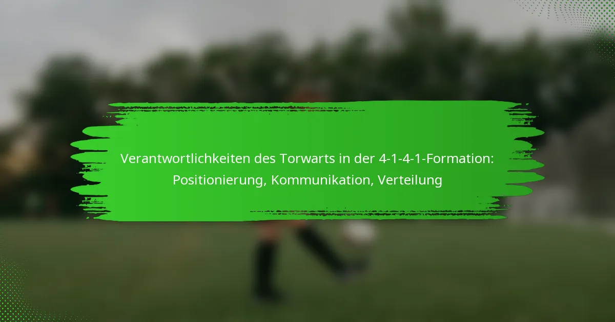 In einer 4-1-4-1-Formation spielt der Torwart eine zentrale Rolle, die effektive Positionierung, klare Kommunikation und präzise Verteilung umfasst. Diese Verantwortlichkeiten sind entscheidend, um eine solide Abwehr zu gewährleisten und reibungslose Übergänge in den Angriff zu ermöglichen. Durch effektive Kommunikation mit den Mitspielern und den Einsatz strategischer Verteilungsmethoden hilft der Torwart, die Teamstruktur aufrechtzuerhalten und die Gesamtleistung auf dem Feld zu verbessern.