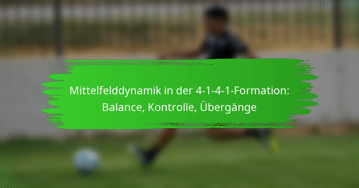 Die 4-1-4-1-Formation ist ein taktisches Setup im Fußball, das eine starke Präsenz im Mittelfeld betont und gleichzeitig defensive Stabilität aufrechterhält. Diese Struktur ermöglicht eine ausgewogene Verteilung der Spieler, was eine effektive Kontrolle und nahtlose Übergänge während der Spiele erleichtert. Die Mittelfeldspieler spielen eine entscheidende Rolle beim Ballbesitz und beim Diktieren des Tempos, um sowohl defensive Solidität als auch offensive Unterstützung zu gewährleisten.