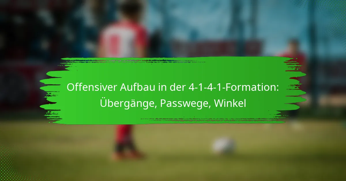 Die 4-1-4-1-Formation ist ein taktisches Setup im Fußball, das defensive Stabilität mit einer dynamischen Präsenz im Mittelfeld kombiniert und es den Teams ermöglicht, effektiv zwischen Angriff und Verteidigung zu wechseln. Um den offensiven Aufbau zu maximieren, müssen die Teams sich auf strategische Positionierung, schnelle Übergänge und die Schaffung von Passwegen und -winkeln konzentrieren, die defensive Schwächen ausnutzen. Durch die Nutzung dieser Elemente können die Spieler ihre Fähigkeit verbessern, den Ballbesitz zu halten und Tormöglichkeiten zu generieren.