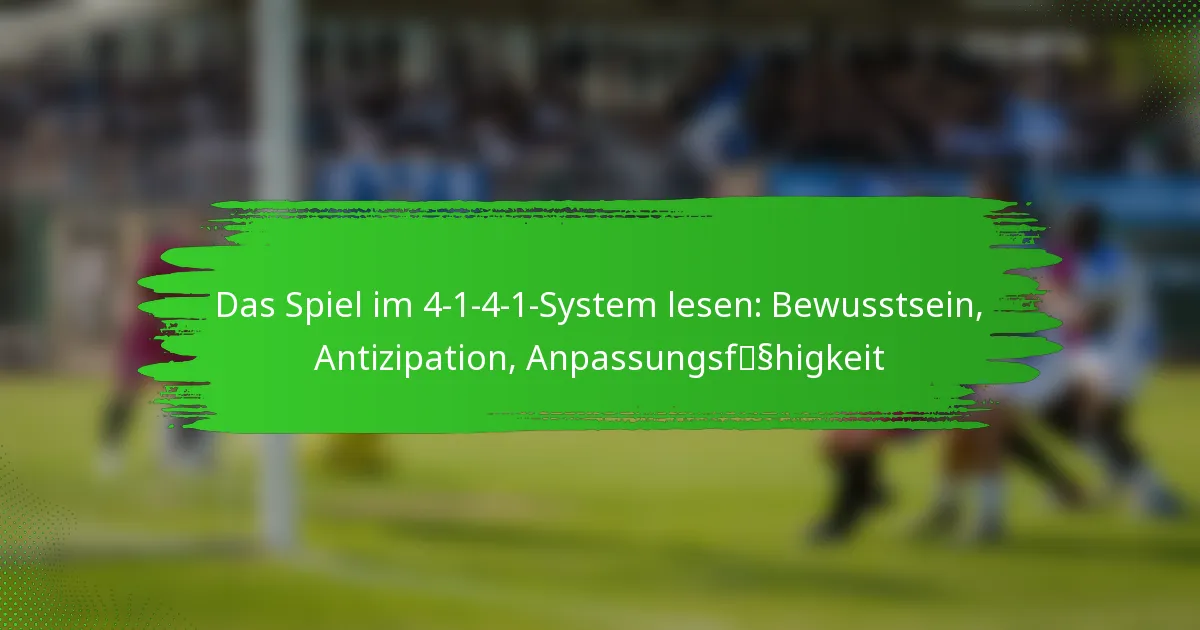 Die 4-1-4-1-Formation ist ein taktisches Setup im Fußball, das defensive Stärke mit dynamischem Mittelfeldspiel ausbalanciert und vier Verteidiger, einen defensiven Mittelfeldspieler, vier Mittelfeldspieler und einen einzigen Stürmer umfasst. Um diese Formation zu meistern, müssen die Spieler Bewusstsein, Antizipation und Anpassungsfähigkeit entwickeln, die es ihnen ermöglichen, das Spiel zu lesen, die Aktionen der Gegner vorherzusehen und ihre Strategien effektiv anzupassen. Durch das Verfeinern dieser Fähigkeiten können Teams die strukturelle Integrität aufrechterhalten und gleichzeitig Chancen auf dem Platz nutzen.