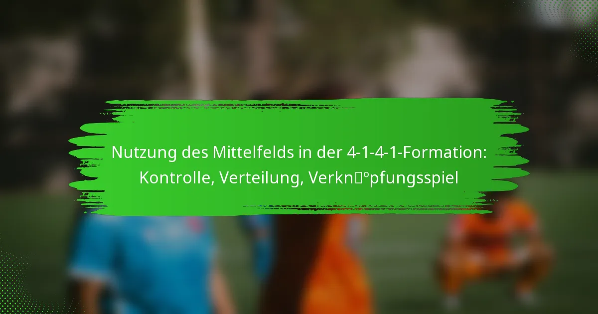 Die 4-1-4-1-Formation ist ein taktisches Setup im Fußball, das die Kontrolle im Mittelfeld und Flexibilität betont und eine solide defensive Struktur neben dynamischen Angriffsoptionen bietet. Die Mittelfeldspieler spielen eine entscheidende Rolle in dieser Formation, indem sie effektive Ballkontrolle und strategische Positionierung nutzen, um den Ballbesitz aufrechtzuerhalten und Übergänge zu erleichtern. Ihre Fähigkeit, den Ball effektiv zu verteilen und das Spiel zwischen Abwehr und Angriff zu verknüpfen, ist entscheidend für die Schaffung von Torchancen und die Kontrolle über das Spiel.